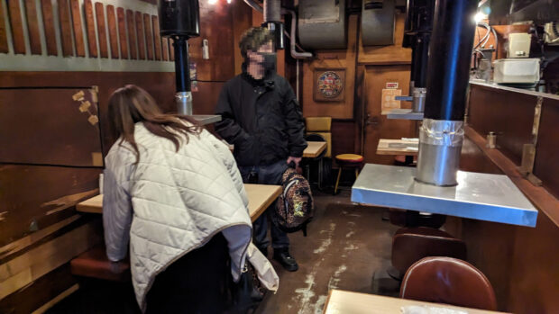 yakiniku-yuji_0016TwitterFacebookはてブPocketLINEコピー 2025.11.25東京渋谷 炭火焼 ゆうじ、おまかせ、生ビール(黒ラベル)/枝豆付き、カットレモン、刺身各種(ハツ刺し[特製醬油タレ、辛子])、キムチ・ナムル(ほうれん草、舞茸)、煮込み、レバー、ホルモン(ごま油、ねぎ、ごま)、牛カシラ、ハラミ、上ミノ、マッコリ、焼きすき ※牛脂付き(サーロインを大きな薄切りに切り出し、特製タレに漬けてた一品。)、牛すじカレー、モナカアイス